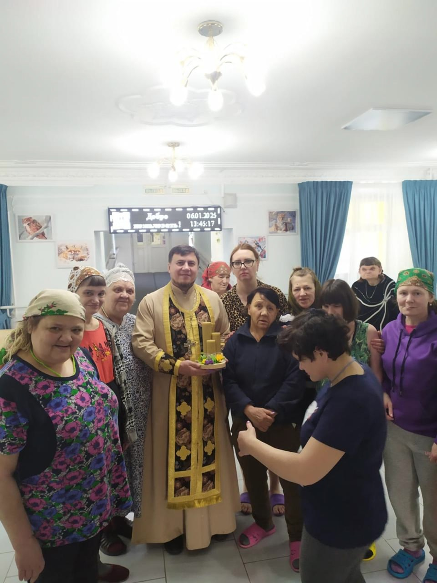 7 января 2025 года, в день Рождества Христова, штатный клирик Спасо-Преображенского кафедрального собора г. Новокузнецка протоиерей Максим Матвеев посетил Новокузнецкий психоневрологический интернат. Священник совершил праздничный молебен, поздравил проживающих с Рождеством Христовым, рассказал о евангельских событиях этого праздника и его духовном значении для каждого человека, а также ответил на вопросы присутствующих. Проживающие интерната в ответ поздравили батюшку и преподнесли ему оригинальный подарок, сделанный своими руками.