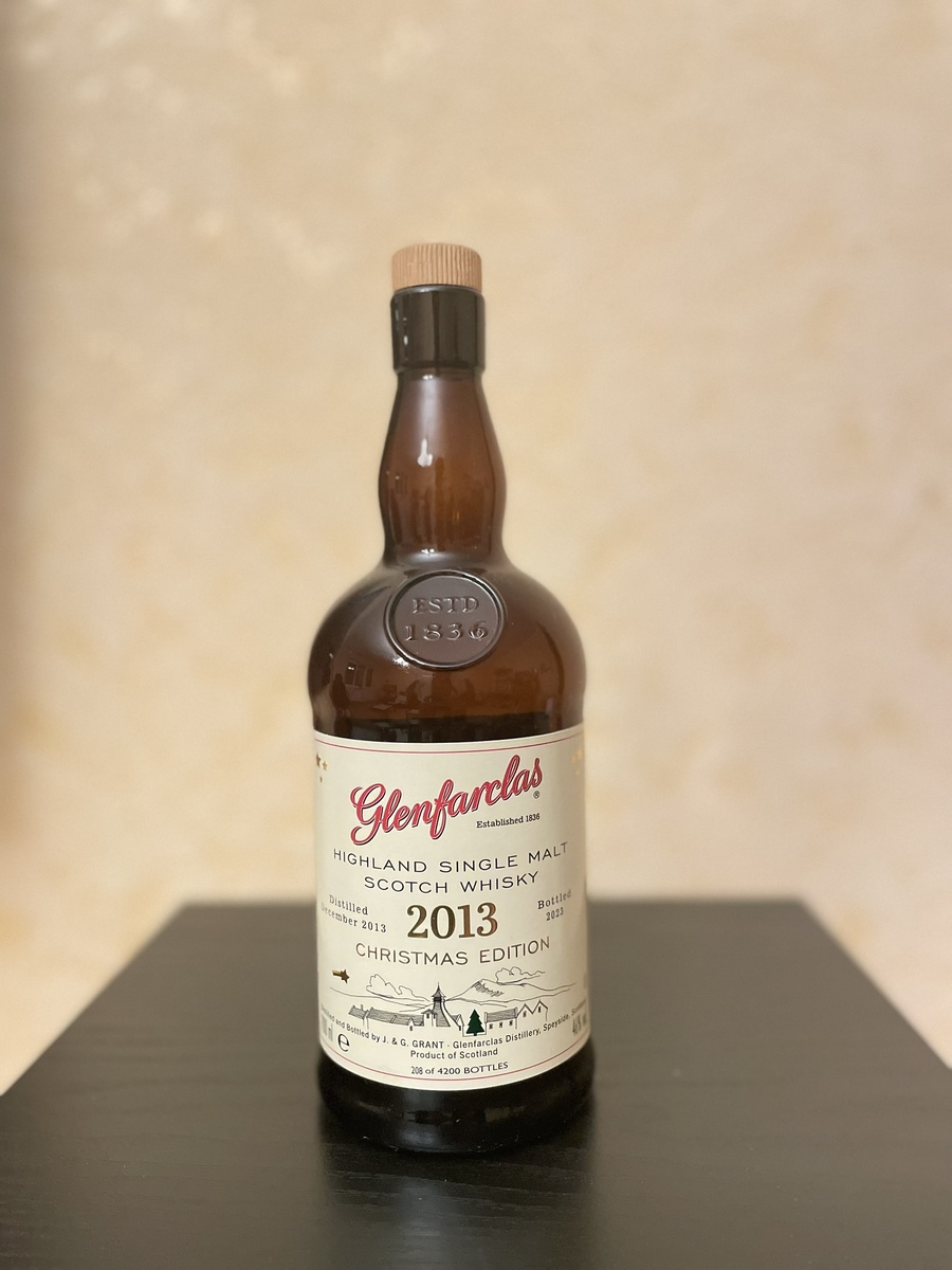 Это виски из рождественской серии, которую Glenfarclas регулярно производит, используя те виски, которые были дистиллированы на Рождество. Этот релиз были дистиллирован в декабре 2013 года, а затем выдерживалось исключительно в бочках (500 литровых баттах) из-под испанского хереса Oloroso на традиционных складах винокурни. Выпущен в 2023 году в количестве 4200 бутылок без холодной фильтрации и подкрашивания. Одна бутылочка добралась и до меня.