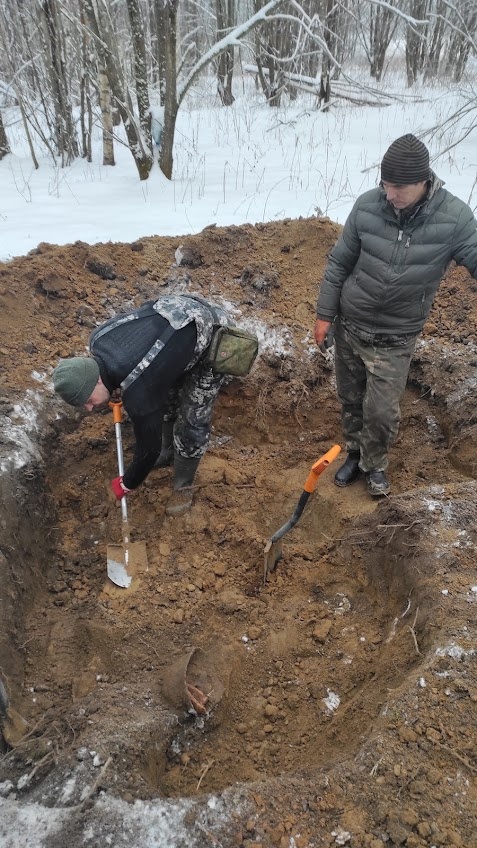 Вот гигантская заснеженная гора валунов на опушке леса. Заметенные недавней пургой поля там, где когда-то была большая финская деревня. Ржавый диск от пулемета Дегтярева между камней. Морозная, звенящая тишина, за которой - тайна 80-летней выдержки. Летом 1941-го в этой деревне попали в окружение разрозненные части Красной Армии, отступавшей на юг от Выборга. Сотни так и не вышли из этого котла. А после войны прямо на этом месте водрузили стартовые столы ПЗРК "Даль", обнесли все колючей проволокой, поставили часовых. В декабре 2021-го нет уже ни ракет, ни часовых, все заброшено. Мрачные руины, стоящие прямо на других руинах. И морозная, звенящая тишина над всем этим. Коллеги-поисковики почти случайно свернули на заросшую тропинку близ одной из каменных гор. Сигнал прибора, шурф - и вот на небольшой глубине советская каска, а в ней череп. Парни позвонили нам, попросили приехать. Очень скоро стало понятно, что солдата наскоро - видимо, в промежутке между боями - похоронили свои же. Совс