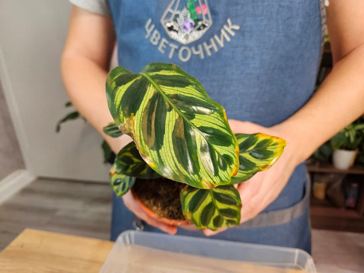 Калатея макоя как раз была из таких. Внешний вид показывал, что с ней что-то не так, потому как большая часть листьев была с пожелтевшими краями, а это верный знак того, что корни гниют.