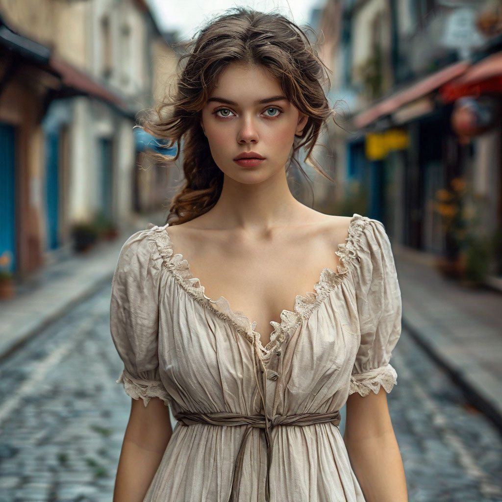 — В таком вот, — Наташа оттянула край холщовой рубашки.