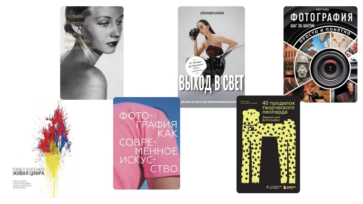 или что нужно просить каждому фотографу: 1.Фотография как современное искусство Шарлотта Коттон 2.Модель. Проблемы позирования Уильям Мортенсен 3.Живая цифра Павел Косенко 4.Выход в свет. Как выйти из тени и стать профессиональным фотографом Александра Бунаева 5.40 проделок творческого леопарда. Задания для фотографов Иван Князев Александра Кособокова 6.Фотография шаг за шагом. Просто и понятно Скотт Келби