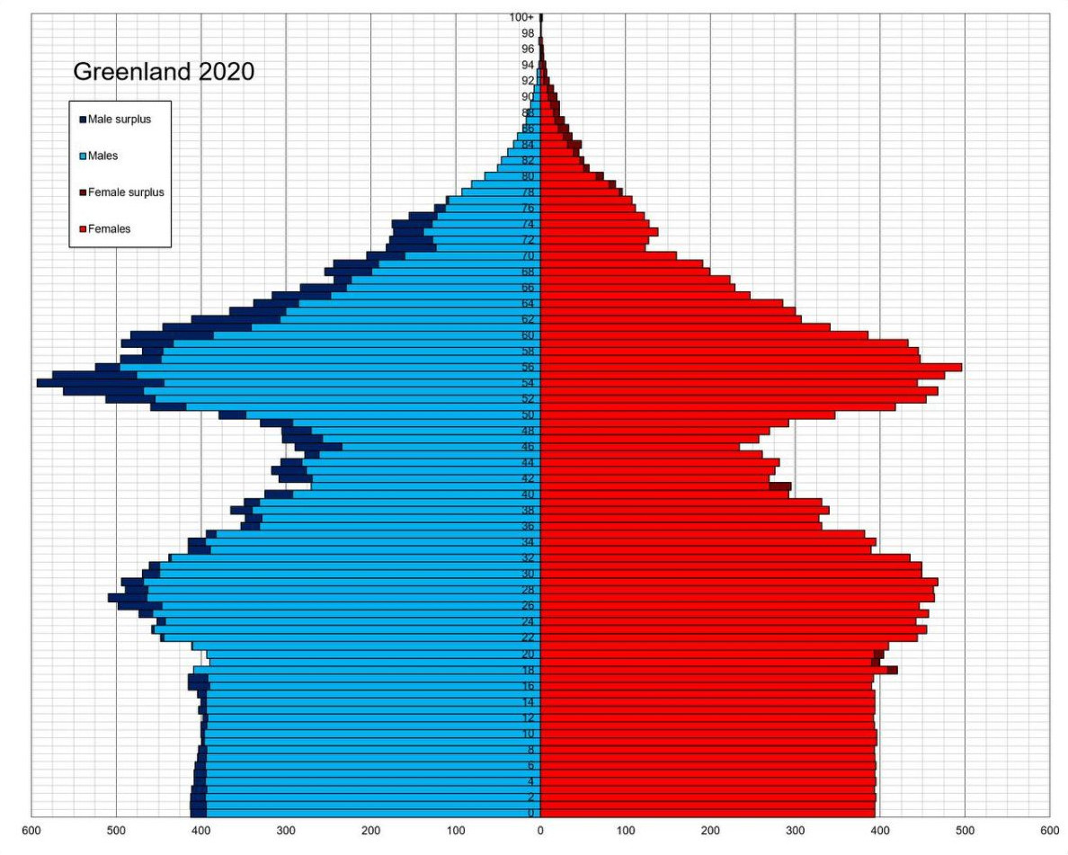 Насильственная стерилизация женщин Гренландии была настолько массовой, что ее результаты четко видны на демографической пирамиде.