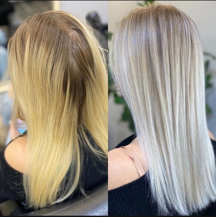 - Поддержание цветаДля сохранения чистого и яркого блонда рекомендуется использовать специальные шампуни и кондиционеры с фиолетовым пигментом. Они нейтрализуют желтый оттенок и помогают поддерживать холодный тон.