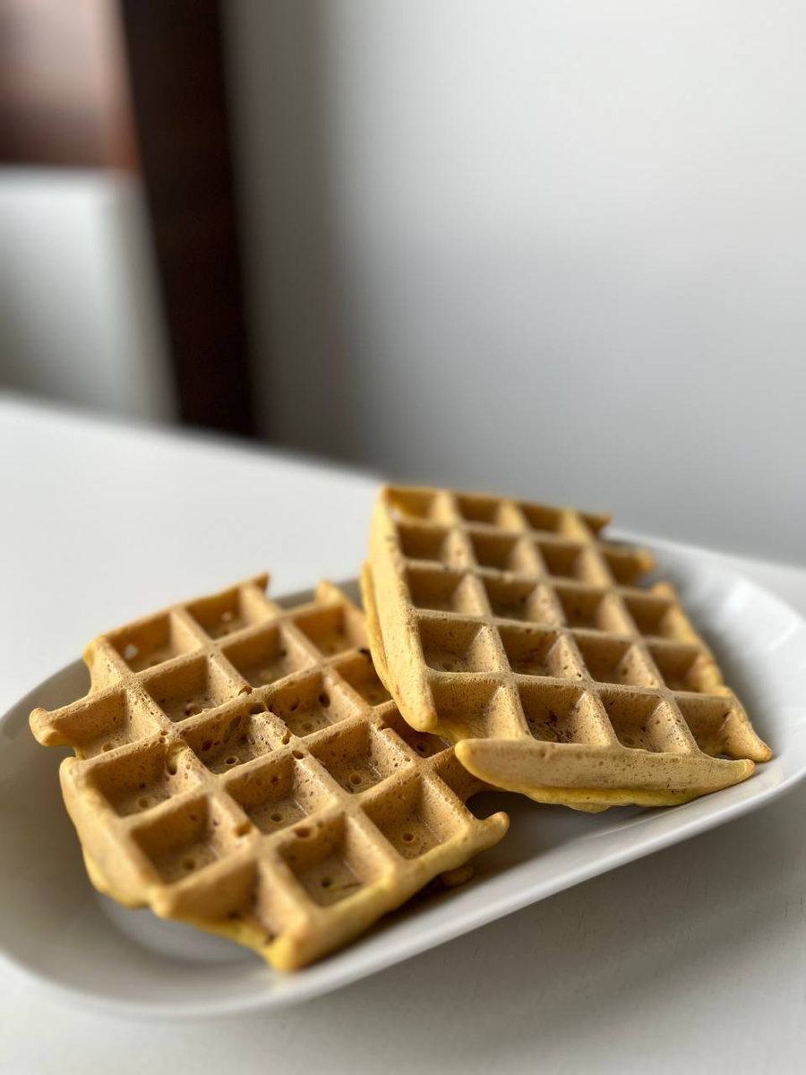 Когда речь заходит о вафлях, большинство представляет сладкий десерт с фруктами и сиропом. Но вафли могут стать полноценным обедом! Особенно если в основе рецепта – полезные ингредиенты, такие как нутовая мука и кабачки. Этот рецепт прост в приготовлении, не содержит глютена и порадует вас нежной текстурой и сбалансированным вкусом. • Кабачок: низкокалорийный овощ, богатый клетчаткой и минералами, помогает улучшить пищеварение и поддерживать фигуру. • Нутовая мука: источник растительного белка и полезных углеводов, она способствует насыщению и улучшает обмен веществ. • Льняные яйца: альтернатива куриным яйцам, добавляют полезные жирные кислоты и делают рецепт полностью растительным. Рецепт вафель с кабачком 🥦 Ингредиенты: • 230 г нутовой муки • 1,5 ч.л. разрыхлителя • Кабачок (200–250 г) • 2 льняных яйца (2 ст.л. молотых семян льна + 6 ст.л. воды) • 280 г воды • 1 зубчик чеснока • Соль морская, перец чёрный по вкусу • Зелень (укроп, петрушка – по желанию) 👩🍳 Как приготовить: 1. Н