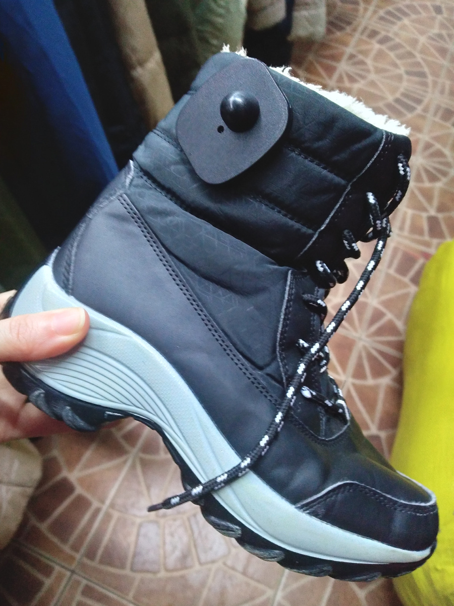 Зимние сапоги небольшого размера, скорее детские. Высокая подошва не даст промокнуть, внутри белый мех не даст замёрзнуть.