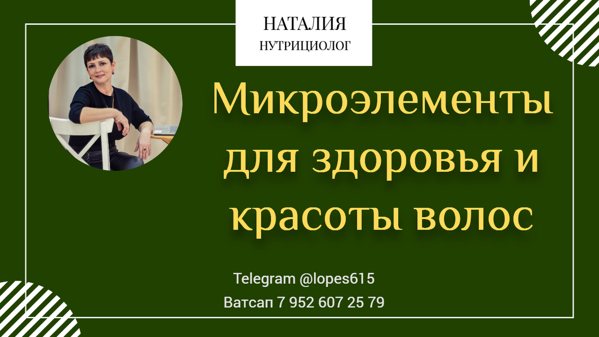 Сегодня многие люди до сих пор продолжают думать, что красота и состояние волос зависят только от природы, шампуня и ухода. На самом же деле, волосы – это такая же часть вашего организма, как и все остальное, поэтому их состояние напрямую связано с наличием или отсутствием у вас дефицитов макро- и микроэлементов. Сохраняйте себе небольшую памятку – помните, что корни всех проблем в организме лежат внутри, а не снаружи! 👇 Записаться на консультацию Нужна помощь? Задайте вопрос, я рядом: Телеграм https://t.me/lopes615