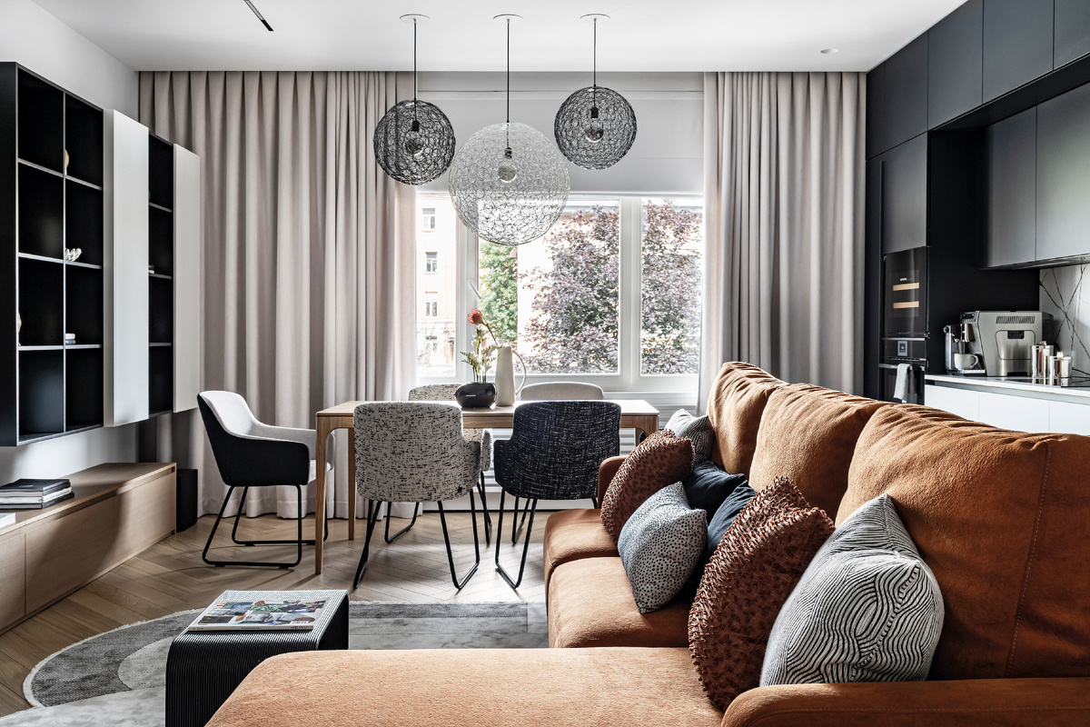 Дизайнер Татьяна Рябцева создала уютное и функциональное пространство для большой семьи, наполненное цветом, настроением и отражающее характер хозяев квартиры и их детей. Проект квартиры создан для семьи с тремя детьми. С этими заказчиками я работаю уже много лет и приятно, что с каждым новым проектом я вижу как растет их семья, и всякий раз работать с ними одно удовольствие! При проектировании интерьера основной задачей было предусмотреть максимально возможную зону кухни-гостиной, чтобы было комфортно проводить время всей семьей и принимать гостей. Также важно было разделить комнату родителей и зону детских. В основной части квартиры — кухни-гостиной — на себя обращает внимание диван цвета восточных пряностей, на котором сразу же хочется удобно расположиться перед телевизором. Детская для мальчика — это космическая планета, где на потолке не просто точечные светильники, а гипсовые выступающие кратеры, стена за изголовьем выполнена как лунная поверхность в 3D панелях. Детскую девочек