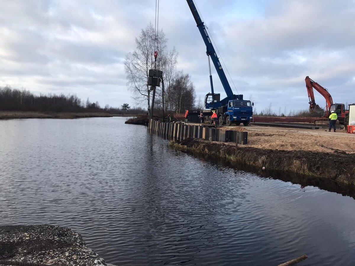 — Вибропогружение. Этот метод позволяет быстро и надежно погрузить шпунтовые конструкции в грунт, создавая устойчивую защиту береговой линии.