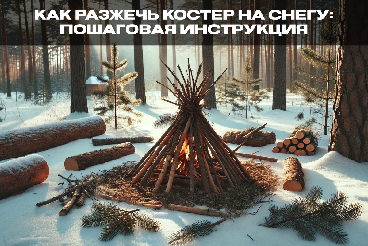 Разведение костра на снегу требует особого подхода, чтобы он не затух из-за таяния снега или сырости. Вот пошаговая инструкция: