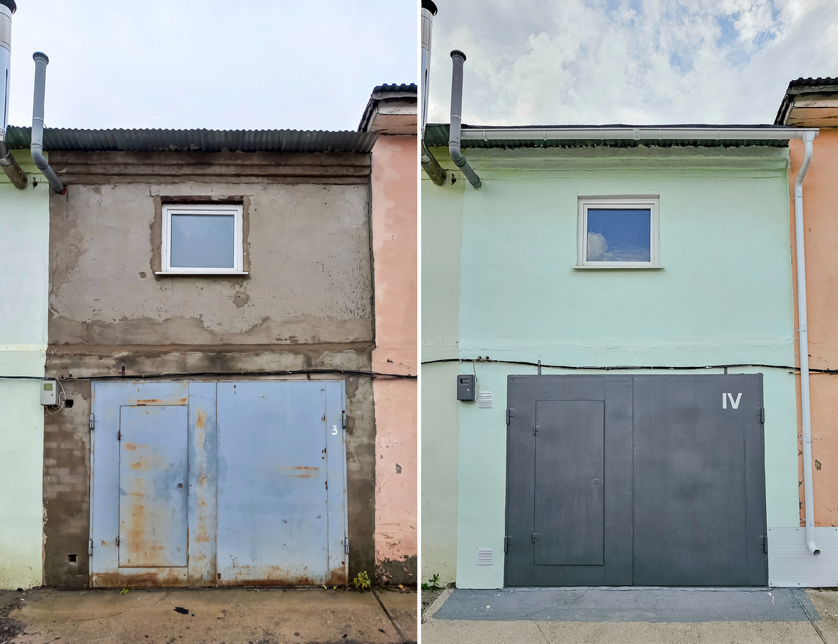 Моей крупнейшей работой 2024 года стало строительство складского помещения для торговой организации. От начала закупки материалов с марта до запуска объекта в полноценную эксплуатацию к октябрю прошло около семи месяцев. За это время был выполнен ремонт первого и второго этажей, укладка новой кровли, приведение в порядок фасада, а затем переезд склада из другого помещения. Объём поэтапного фотоматериала оказался настолько велик (около 1000 фото), что рассказывать о стройке придётся в нескольких статьях. Сегодня я просто продемонстрирую несколько коллажей с состоянием объекта ДО и ПОСЛЕ. Итак, по причине отсутствия на территории городского округа любых альтернатив, под складское помещение для магазина осенью 2023 года был приобретён 15-летний двухэтажный гараж. С момента постройки им абсолютно точно никто не занимался, и посещался он крайне редко. Среди его проблем были следующие критичные особенности: В гараже находилось много хлама и пыли. Потолочная отделка второго этажа была разруш