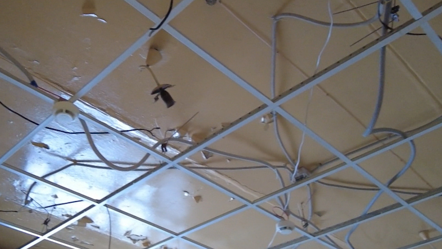 В помещении, где располагается некоммерческая организация, в канун Рождества случилась коммунальная авария. Водой уничтожены навесные потолки, стены и даже мебель. Центр «Счастье» восстанавливают после потопа, но своими силами общественникам не справиться. Весь потолок словно смыло водой. Разрушения могли быть еще сильнее, но сработала пожарная сигнализация. Второй день подряд сотрудники центра «Счастье» пытаются справиться с последствиями потопа. Все отсыревшее и теперь уже непригодное — нужно выбросить. От большей части мебели тоже пришлось избавиться. Замене подлежат линолеум, сантехника и двери. Авария произошла из-за того, что лопнула изношенная труба. Водой в центре затопило более сотни квадратных метров. Больше всего пострадали две комнаты, где проходят занятия у особенных детей младшей и средней групп. «Это большая общая зона, которая нужна для работы. К сожалению, мы пока должны приостановить работу», — говорят сотрудники центра. И когда «Счастье» теперь сможет открыть свои дв