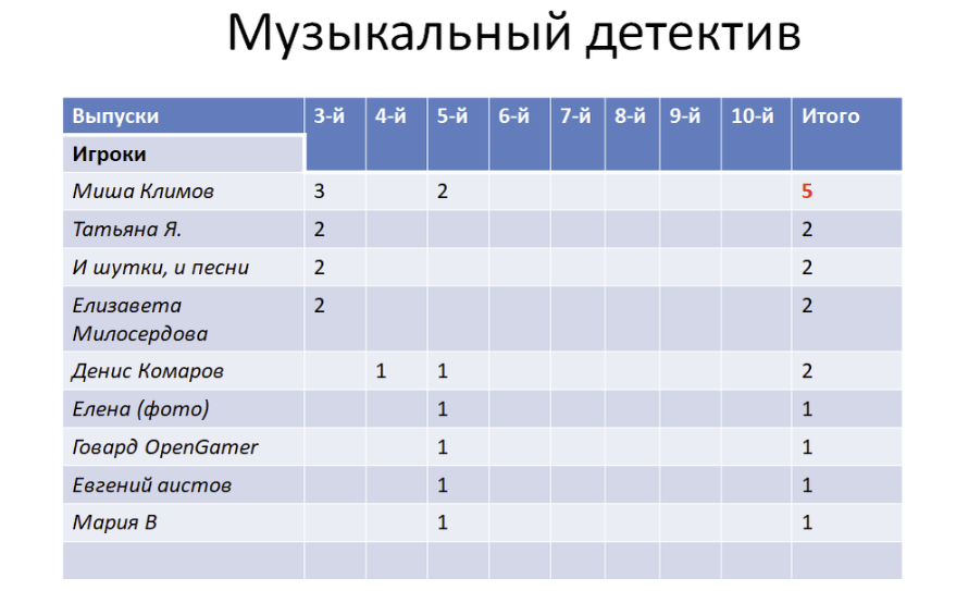 А кто из читателей догадался, что за аватаром Милы Йогович прячется Нонна Гришаева? Это всё те же Елена (фото), Миша Климов, Говард OpenGamer, Мария В, Евгений аистов и Анна Губанова. И к ним присоединяется Денис Комаров. И они все получают 2 балла.