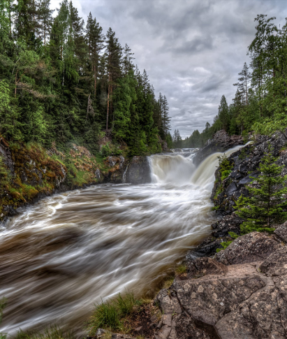 Водопады Карелии – это чудо северной природы. Падуны, как их называют здесь, точное отражение природной души – энергичной, немного надменной. Но такой живой и страстной. Самый, пожалуй, знаменитый. Второй по высоте в Европе равнинный водопад. Высота – более 10 метров. Кивач – действительно удивляет своим величием.В строгом обрамлении серого базальта, оттененный сдержанной зеленью деревьев, грохочет он кружевной пеной. Вокруг Кивача устроен одноименный заповедник. "Алмазна сыплется гора с высот четыремя скалами, жемчугу бездна и серебра" - Гаврила Романович Державин.