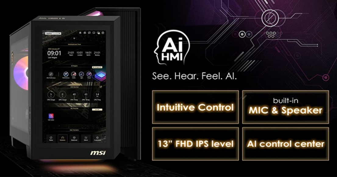 Компания MSI представила свой второй игровой настольный компьютер MEG VISION X AI на выставке CES 2025, получив две награды CES Innovation Awards за инновационный дизайн и технические характеристики. Эта новая система представляет собой последнее достижение MSI в области высокопроизводительных систем как для игр, так и для творческой работы. Наиболее примечательной особенностью настольного компьютера является наличие встроенного 13-дюймового сенсорного экрана FHD AI HMI, который функционирует как интеллектуальный центр управления. Этот экран оснащен интегрированными динамиками и микрофоном, что позволяет пользователям взаимодействовать с набором приложений для искусственного интеллекта от MSI. Система постоянно отслеживает структуру активности пользователей и автоматически корректирует настройки для оптимизации производительности. Пользователи могут персонализировать свой опыт с помощью различных виджетов, а экран служит дополнительным дисплеем для повышения производительности и творче