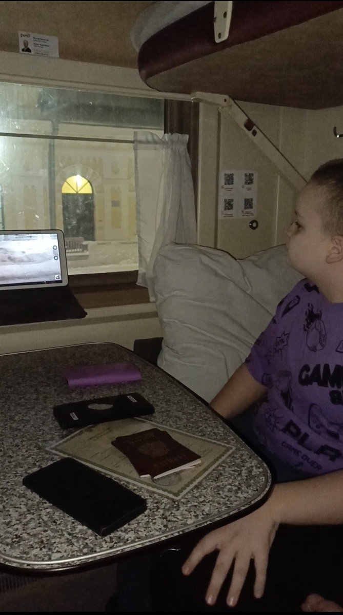 Я немного еще переживала не испугается ли он во внутри поезда, так как это не вагон метро. Ко всему прочему, время раннее; все в вагоне спят . Нужно вести себя тихо .. А эмоциональный Женя и тихо это как бы несовместимые вещи. Совсем не совместимые!