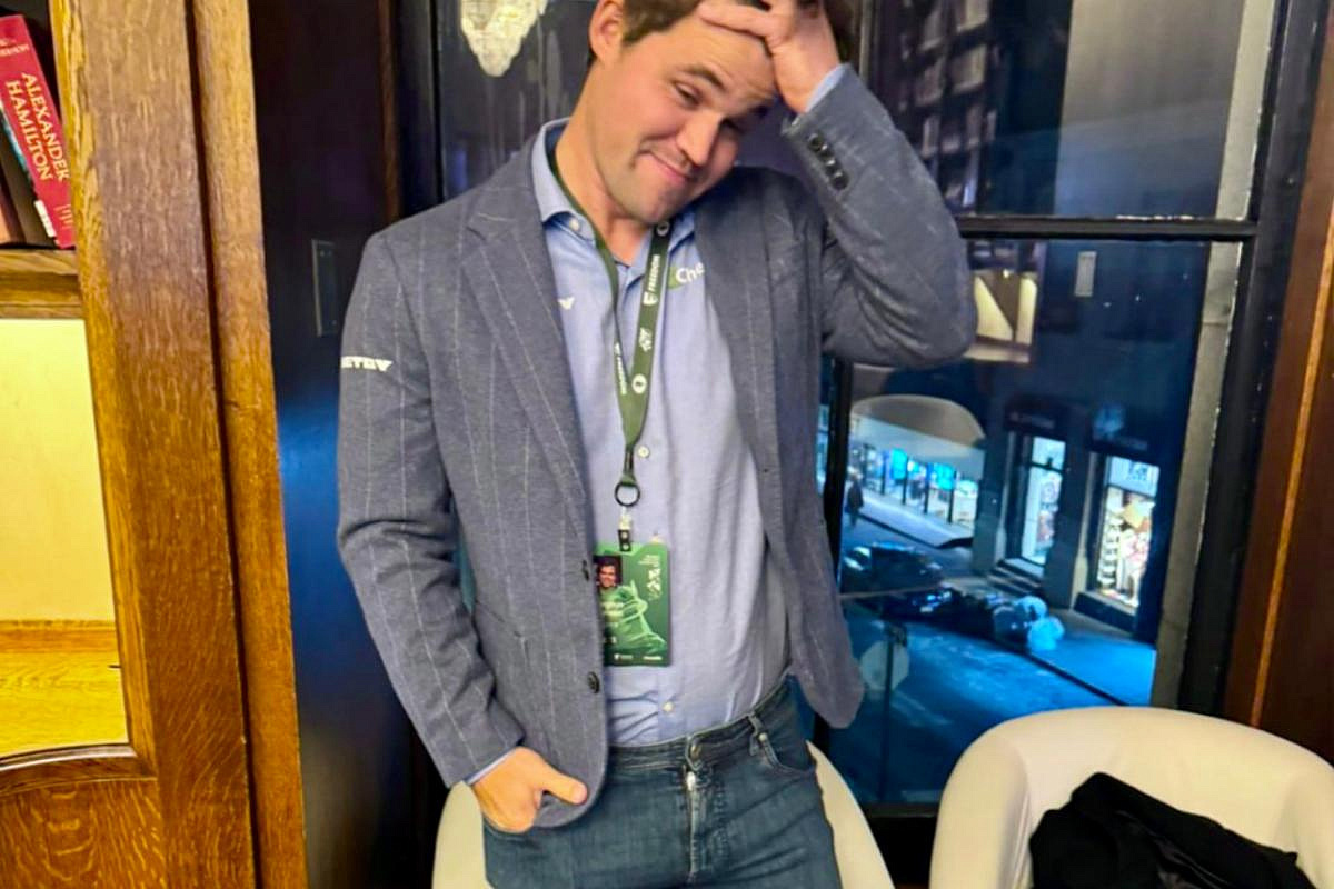 В пятницу Карлсен нарушил дресс-код турнира, явившись на партию в сиреневой рубашке, джинсах и блейзере. Организаторы оштрафовали его на 200 долларов за несоответствие правилам, согласно которым мужчины обязаны придерживаться стиля business casual, включая ношение тёмных брюк. Конфликт с дресс-кодом: После инцидента Карлсен заявил, что не согласен с такими ограничениями, считая их излишне строгими. На выходных руководство ФИДЕ объявило о готовности внести изменения в регламент, допустив «незначительные элегантные отклонения». Однако шахматист предупредил, что в понедельник снова выйдет на игру в джинсах.