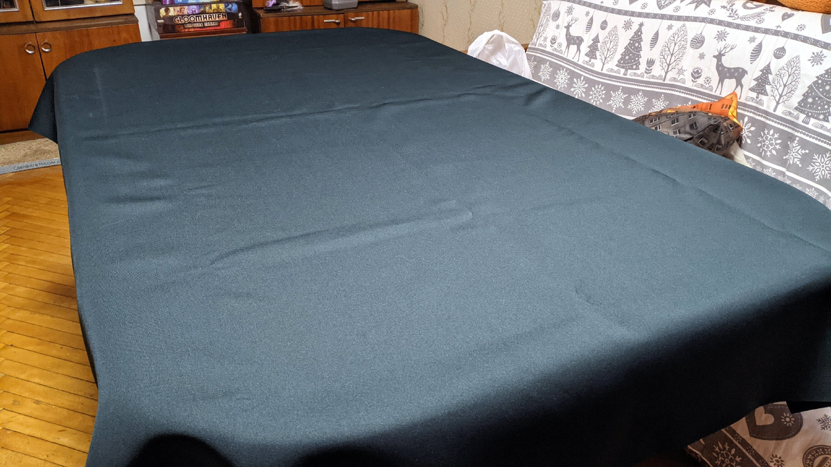 Наступает следующий этап освоения «наполеоники», ибо основную армию собирать закончил (но всё ещё слежу за выпавшими наборами. Мало ли) и этого количества хватит... минимум на двоих, максимум на троих игроков (по моим представлениям). Встал закономерный вопрос оформления всей этой красоты. Стол? Безусловно, ибо в квартирных условиях... ну не на полу, нет. Не в моём случае. И вот голый стол... можно бы, не проблема. Но хочется некой атмосферы. Антуражности. Изначально думал (и давно думал) приобрести бильярдное сукно, т.к. оно казалось оптимальным вариантом для имитации травы + под обычные настолки подойдёт. Но потом... появились они. Поехали! Вот такая вот история от ребят из компании «Шляпа с полями». Производство из Ярославля, специализируются как раз на всём, на чём приятно играть. На фото выше — скатерть тёмно-изумрудного цвета аккурат под размер моего стола. Я сразу хочу отметить клиентоориентированность парней, ибо, как выяснилось, они лучше знают, что мне нужно 😅 Изначально под