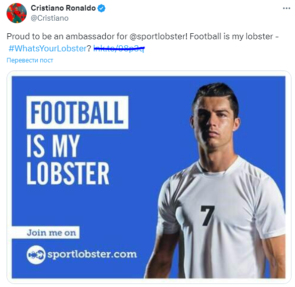 Время от времени 39-летний Криштиану Роналду публикует в соцсетях спонсорские посты с такими компаниями, как UFL, Saudi Arabia, AVA athletes, Whoop и Herbalife. Учитывая его глобальную привлекательность, эти сделки не обходятся дешево. Около десяти лет назад португальцу заплатили за рекламу приложения Sportlobster. Роналду заявил, что это приложение, инвестором которого был Майкл Оуэн, «навсегда изменит отношение болельщиков к спорту». Харри Хьюго, который возглавлял социальный отдел и помогал развивать бренд, а затем стал одним из основателей агентства Goat, рассказал, сколько его бывшая компания выложила за то, чтобы Криштиану написал 30-40 постов. Спикер назвал это «невероятной сделкой» и отметил, что в наши дни ставка Роналду гораздо выше. «Мы были первыми, кто заключил сделку с Криштиану Роналду на четверть миллиона фунтов в цифровом формате», − рассказал Хьюго в интервью Rising Ballers. − Это было за год, за треть его социальных сетей. Речь идет о 30-40 постах, посвященных Sport
