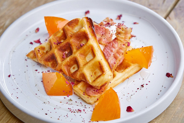 Сладкие вафли, творог, хурма и жареный бекон — кажется, что это дикость, а на самом деле очень вкусно. Рецепт шефа Дмитрия Шуршакова, бренд-шефа многих московских ресторанов. Это блюдо — из гастробара «Никуда не едем».