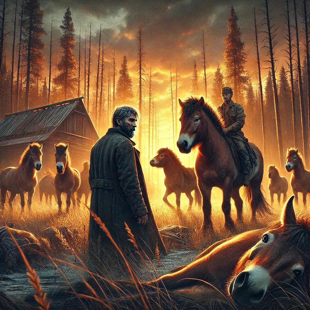 Ещё две лошади сделали то же самое, едва различимое глазом — одна за другой. Разбитое тело собаки мотало по кругу, пока оно не перестало жить. Сначала оно скулило и таскало ноги, а теперь лежало бездыханной горкой — всё, что осталось от бедной овчарки.