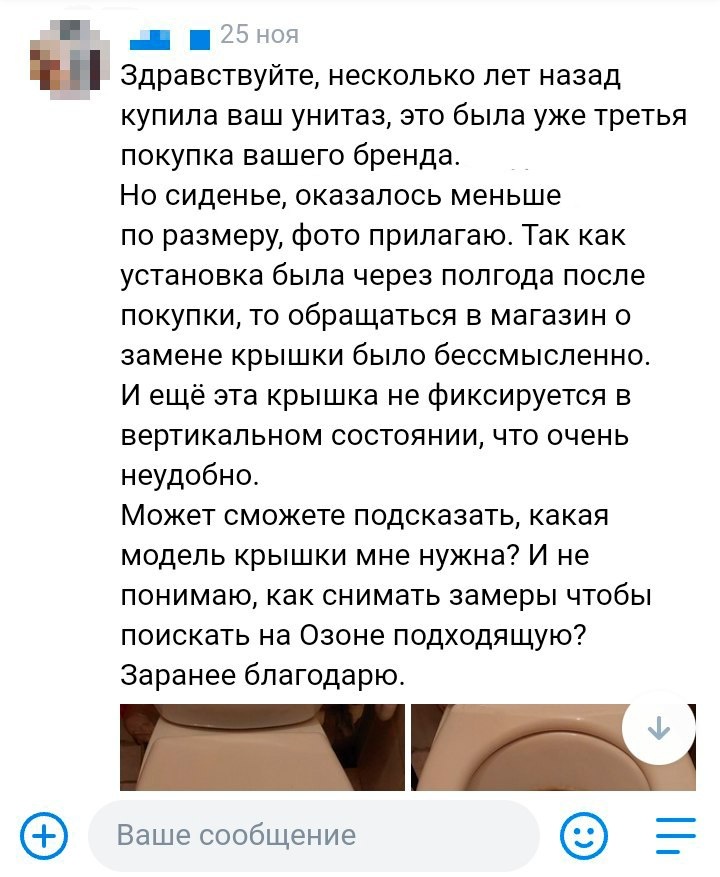 На днях к команде бренда сантехники SANITA LUXE обратился клиент с проблемой «Сиденье, которое было в комплекте с унитазом, не подходит к нему».