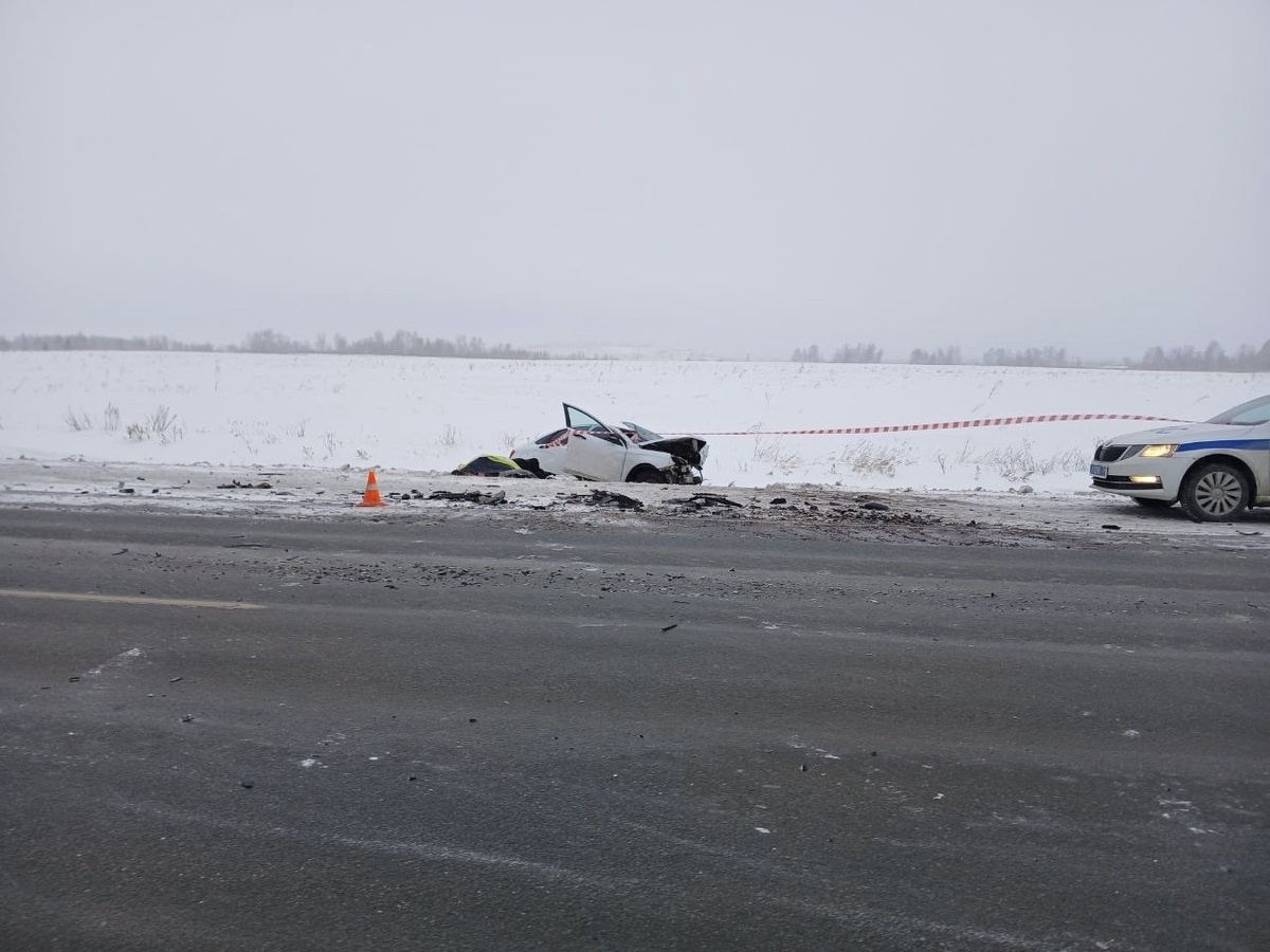 Появились фотографии с места страшного ДТП в Челябинской области, передает корреспондент Агентства новостей «Доступ». Напомним, все произошло утром 9 января на территории Увельского района. На федеральной дороге Челябинск – Троицк водитель Nissan Almera, по предварительным данным, выехал на полосу встречного движения и столкнулся с «Ладой Веста». Авария произошла в условиях снегопада, а иномарка совершала маневр на разрешенном для этого участке. В результате погибли оба водителя, а также пассажирка отечественного автомобиля. Также с травмами госпитализирована пассажирка Nissan Almera. В ГАИ подчеркивают, что никто из погибших не был пристегнут ремнями безопасности.