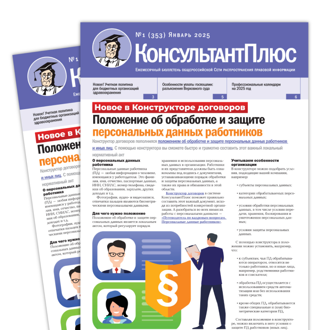 Читайте в выпуске: ✅ Новое в Конструкторе договоров. Положение об обработке и защите персональных данных работников ✅ Новое! Учетная политика для учреждений здравоохранения ✅ Расчет по страховым взносам: форма обновилась ✅ Особенности уплаты госпошлин: разъяснения Верховного суда ✅ Профессиональные календари КонсультантПлюс на 2025 год ✅ Новости регионального законодательства Перейти к выпуску ⏩ Получить бесплатный пробный доступ к КонсультантПлюс #консультантплюс #бюллетень_консультантплюс