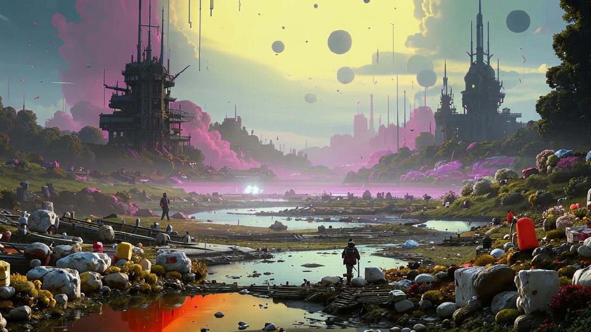 На окраине огромного города, где небо было вечно затянуто серой дымкой, а воздух пропитан запахом гнили и металла, существовал мусорный полигон. Для людей это было место, куда свозили всё ненужное, сломанное и забытое. Но для маленькой группы инопланетян, случайно оказавшихся здесь после крушения своего корабля, это место стало домом. Они не знали, что такое мусор. Для них эти горы хлама были сокровищницей, полной загадок и возможностей. Инопланетяне, которых звали Зик, Лора и Мел, были существами с полупрозрачной кожей, переливающейся всеми цветами радуги. Их глаза, большие и выразительные, видели мир иначе. Они не понимали, почему люди выбрасывают такие удивительные вещи. Разбитые телевизоры, старые книги, ржавые велосипеды — всё это казалось им бесценными артефактами. Они строили из этого дома, создавали инструменты и даже пытались понять, как работают странные устройства, которые люди называли "отходами". Зик, самый любопытный из троих, однажды нашёл старый магнитофон. Он долго изу