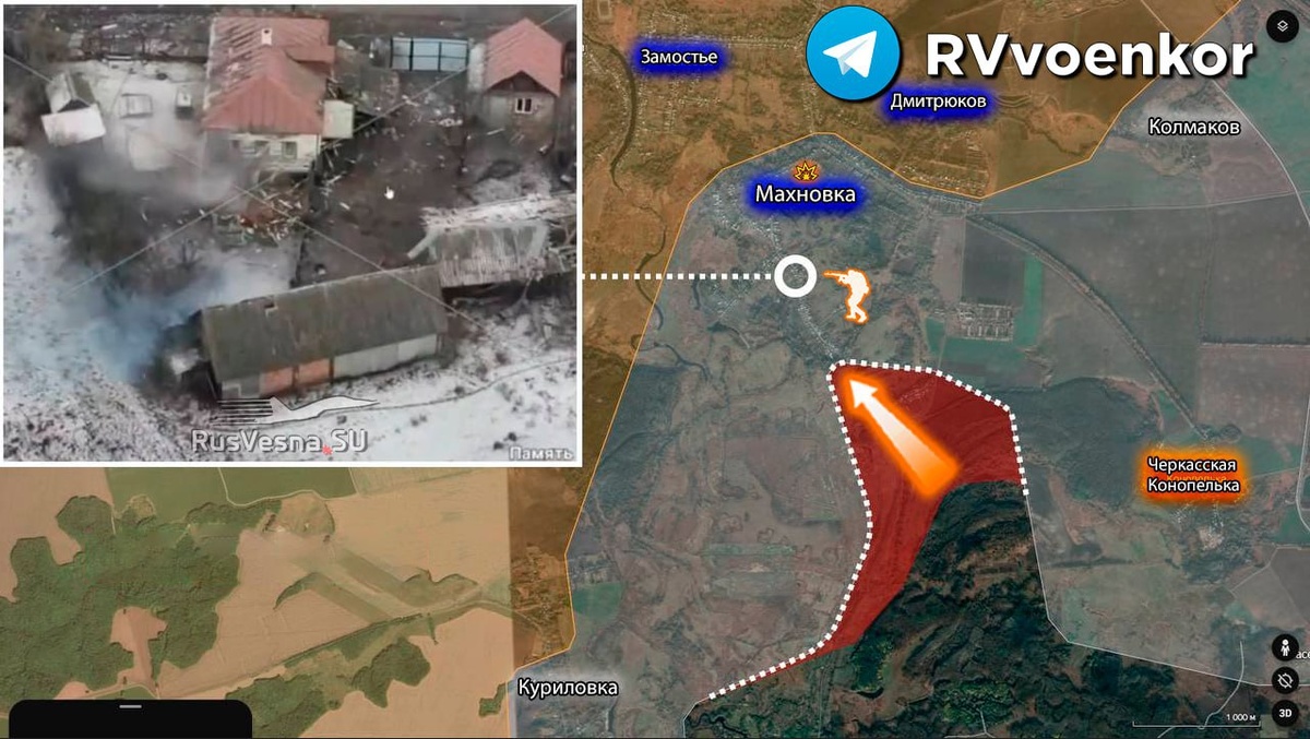 ▪️На южном фланге Курской области продолжаются бои в западной части н.п. Махновка. ▪️"Подразделения российских войск в течении последних дней ведут штурмовые действия в западной части населённого пункта в северном направлении", - пишут ресурсы противника. ▪️Также об остановке в этом районе сообщают и наши десантники: ➖"Заявления о полном освобождении населенного пункта Махновка являются преждевременными. Идут тяжелые встречные бои. Более того, противник понимает, что потеря Махновки и Замостья сильно осложнит оборону Суджи, поэтому оказывает ожесточенное сопротивление, активно работает артиллерией, никаких побегов с позиций нет". ➖"Тем не менее, наши мужики выгрызают буквально каждый метр земли. Будут хорошие новости, набираемся терпения".