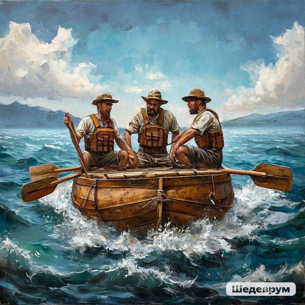 Вася, Костя и Сёга дружили с детства. Они проводили много времени вместе, играли в футбол, гуляли по лесу и купались в речке. Но однажды они решили построить плот и отправиться на нем в путешествие по реке. Ребята устроились на берегу, целый день трудились, сооружая плот. Каждый внёс свой вклад: Вася был идейным вдохновителем и организатором, Костя – ловкий монтажник, а Сёга – профессионал в обработке древесины. Они начали собирать материалы для плота. Вася нашел несколько бревен, Костя принес веревки и гвозди, а Сёга раздобыл весла. Ребята работали вместе, помогая друг другу и стараясь сделать плот как можно лучше. В итоге, плот был готов. Друзья радостно осмотрели свое творение и спустили его на воду. Они уселись на плот и поплыли вдоль берега, наслаждаясь солнечным днем и природой вокруг.Он был большим и прочным, и ребята были уверены, что смогут безопасно пересечь реку. Они загрузили на плот все свои вещи и отправились в путь. Первые несколько часов плавания прошли гладко. Ребя