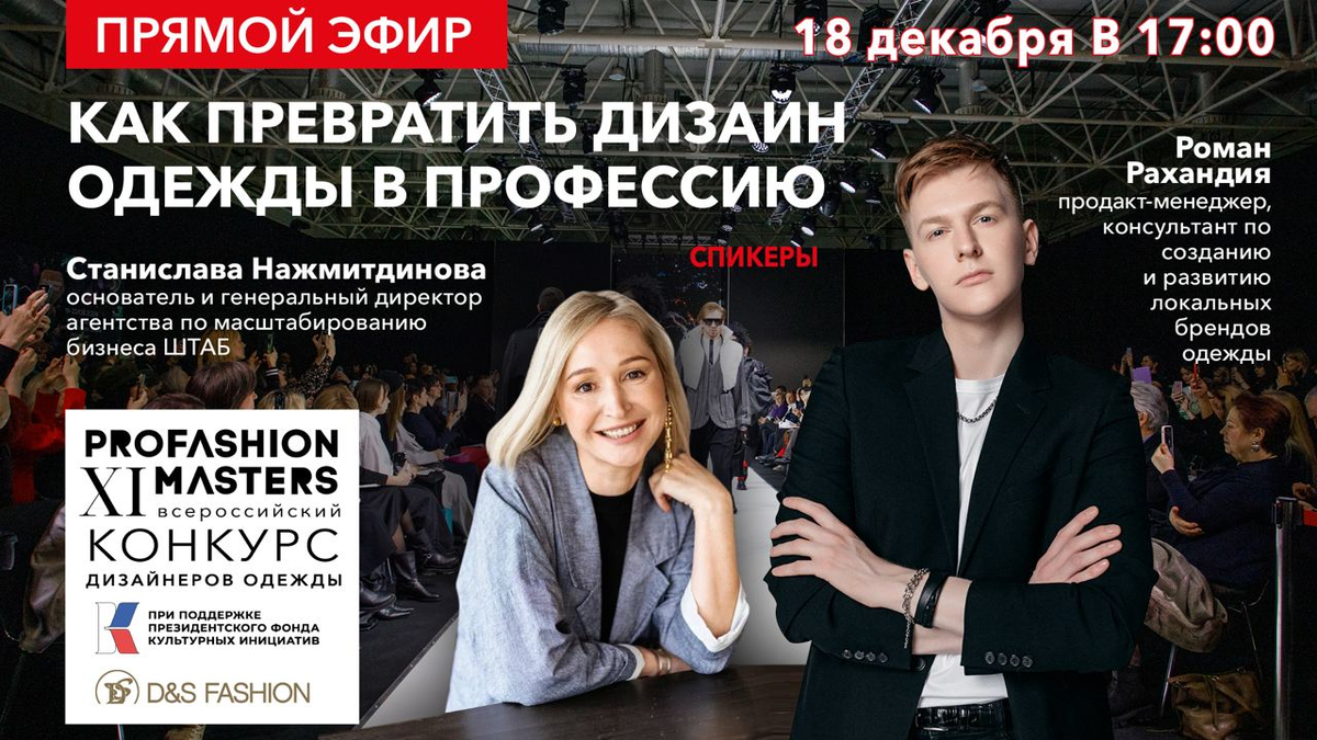 Запись эфира можно посмотреть в группе ВКонтакте: Конкурс дизайнеров одежды PROfashion Masters