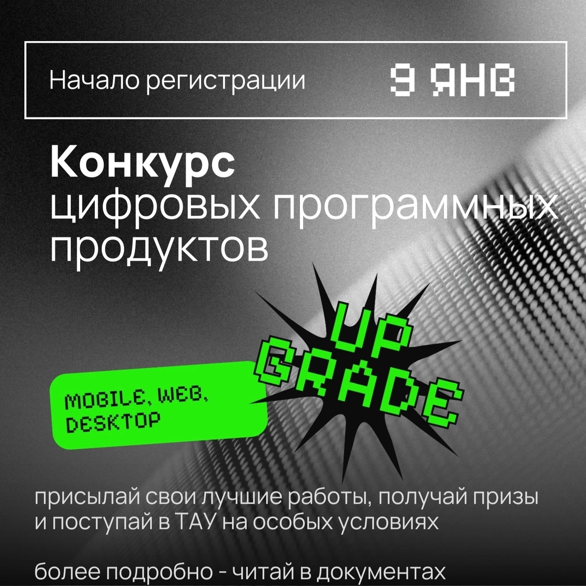Внимание! Внимание! Открыта регистрация на конкурс цифровых программных продуктов Академии! Этапы конкурса: В рамках конкурса участники могут представить самостоятельно разработанный цифровой программный продукт любого вида (mobile, web, desktop). Регистрация доступна по https://docs.google.com/forms/d/e/1FAIpQLSdZdxY_jv7JlMrRR0O7io6SEXJaIYpZj_YSkBzqPORPjX_jLg/closedform Победители конкурса смогут получить дополнительные баллы при поступлении в Академию! Дерзайте! Подробнее про условия Конкурса в посте по ссылке https://vk.com/wall-66012_6239 и на сайте https://taom.academy/vuz/events Следите за новостями на сайте Академии https://taom.academy/ и в социальных сетях https://vk.com/taom_ru, https://dzen.ru/taom и https://t.me/taomacademyabitur