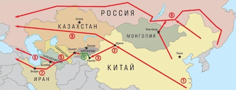 Если все соседи по Центральной Азии – за широтную чугунку, то что мешает? Смотрим на карту. Да, там есть участки, где нужны тоннели и мосты. Да, в Кыргызстане остатки старой советской железки – в руинированном состоянии. Так когда это останавливало китайских инженеров, подрядчиков и инвесторов по линии государства? Вспомним хотя бы Каракорумское шоссе. Совсем другие вызовы, но ведь – сделали. И работает. Первый вопрос у любого железнодорожника возникает простой. Если всё это делается по широте – значит, в плане – выход к Каспию. А там по карте – только паромы, мост не построишь, как и туннель. Золотыми выйдут. Так что, не выходит через тот же Туркменистан проложить дорогу до Ирана? А затем – по уже построенным путям – по южному берегу Каспия. Это – если на Европу. А если на Индийский океан – то опять-таки по иранской территории, уже в направлении – по меридиану. Хоть к Персидскому заливу, хоть в Чабахар, он же Чебахар, он же Чебхар (Chebhar). Кто против иранского транзита? Россия и Ки