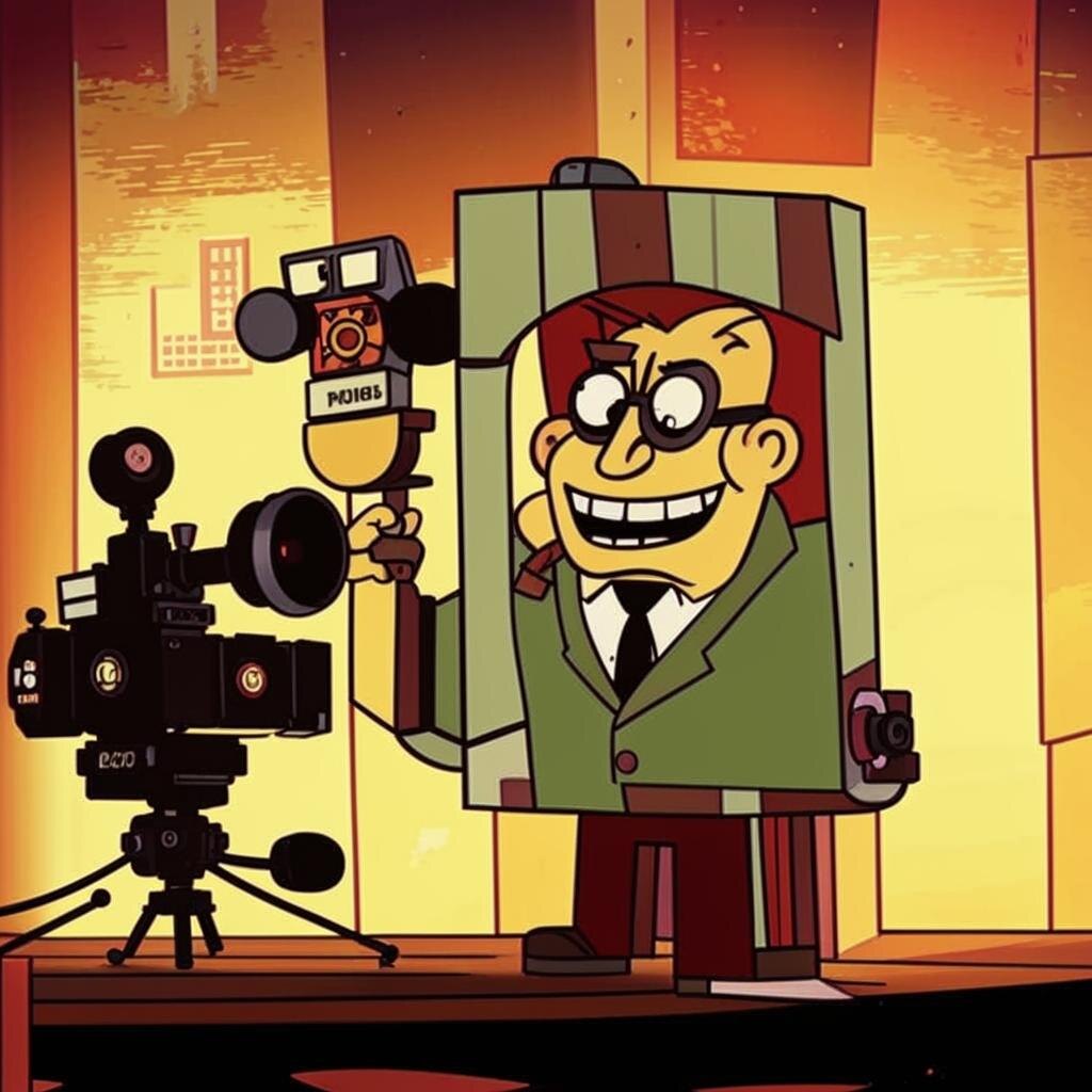 Мы втроём пошли к месту, где стояло несколько камер, штуки для света, хотя солнышко было яркое и плохой герой. Он стоял и сердился, что съёмки задерживаются, а ему ещё в ТЮЗ ехать и ещё на интервью на главный канал телевидения (а это уже не хухры-мухры).