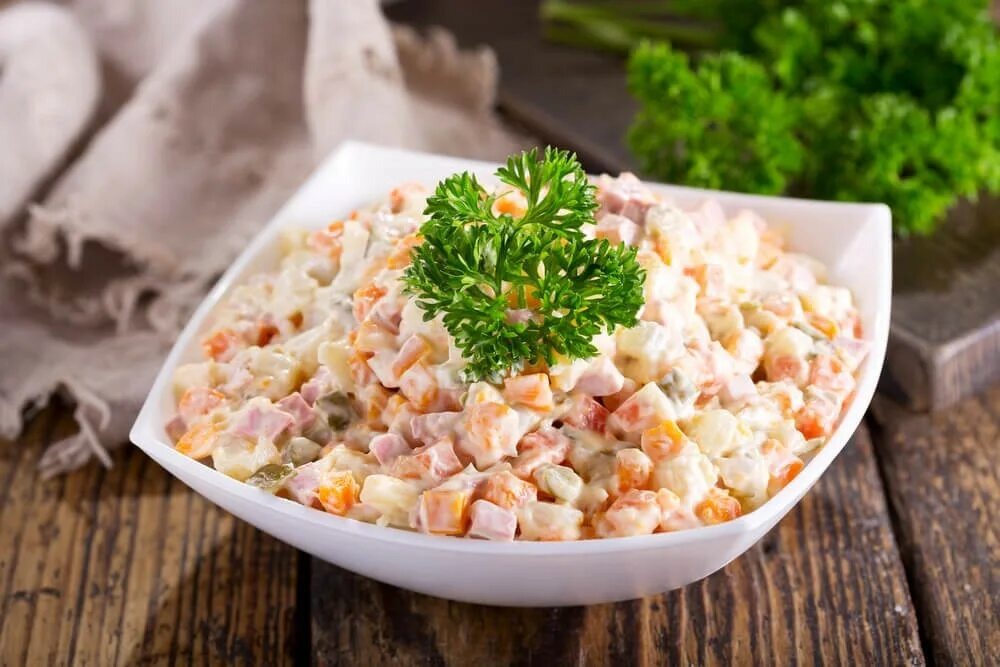 Новогодний салат Оливье, рецепт салата Оливье к новому году 2025.