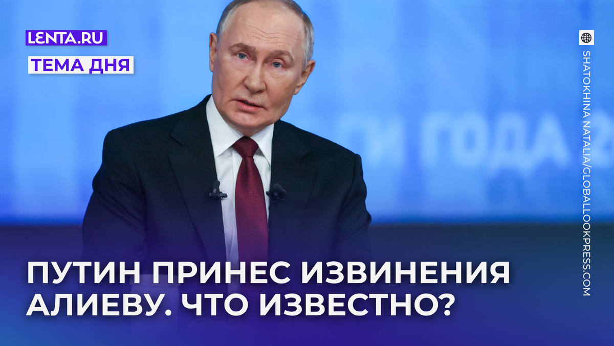Президент России Владимир Путин принес извинения Баку в связи с тем, что инцидент с потерпевшим крушение пассажирским самолетом Embraer 190 авиакомпании AZAL произошел на территории РФ. Об этом он сообщил в телефонном разговоре с президентом Азербайджана Ильхамом Алиевым. Как сообщил Кремль, главы двух государств подробно обсудили вопросы, касающиеся крушения самолета «Азербайджанских авиалиний» вблизи города Актау в Казахстане. Путин выразил соболезнования семьям погибшим и пожелал скорейшего выздоровления пострадавшим. В разговоре было отмечено, что лайнер, следовавший четко по расписанию, неоднократно пытался зайти на посадку в аэропорту Грозного. В это время Грозный, Моздок и Владикавказ атаковали украинские боевые беспилотные летательные аппараты, и российские средства ПВО отражали эти нападения пресс-служба Кремля Следственный комитет России возбудил уголовное дело по факту крушения самолета, в настоящий момент следователи допрашивают гражданских и военных специалистов. Кроме тог
