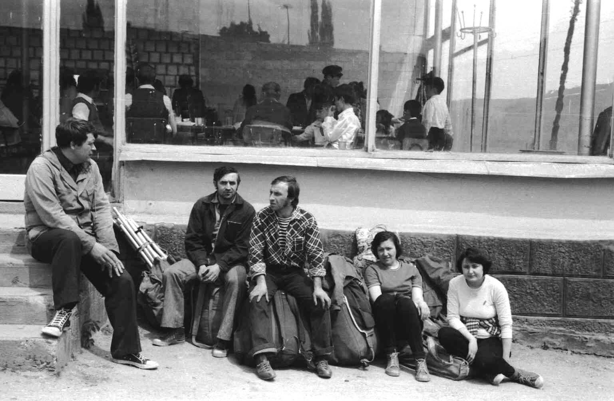 30 апреля поездом прибываем на станцию Невинномысск. Весь вокзал забит туристами. Водники, которые мечтают попасть на Кубань и её притоки, горняки. Найти попутную машину или автобус до верховий Кубани нам не удалось. Ночуем на вокзале, разложившись прямо на полу на свободном пятачке.