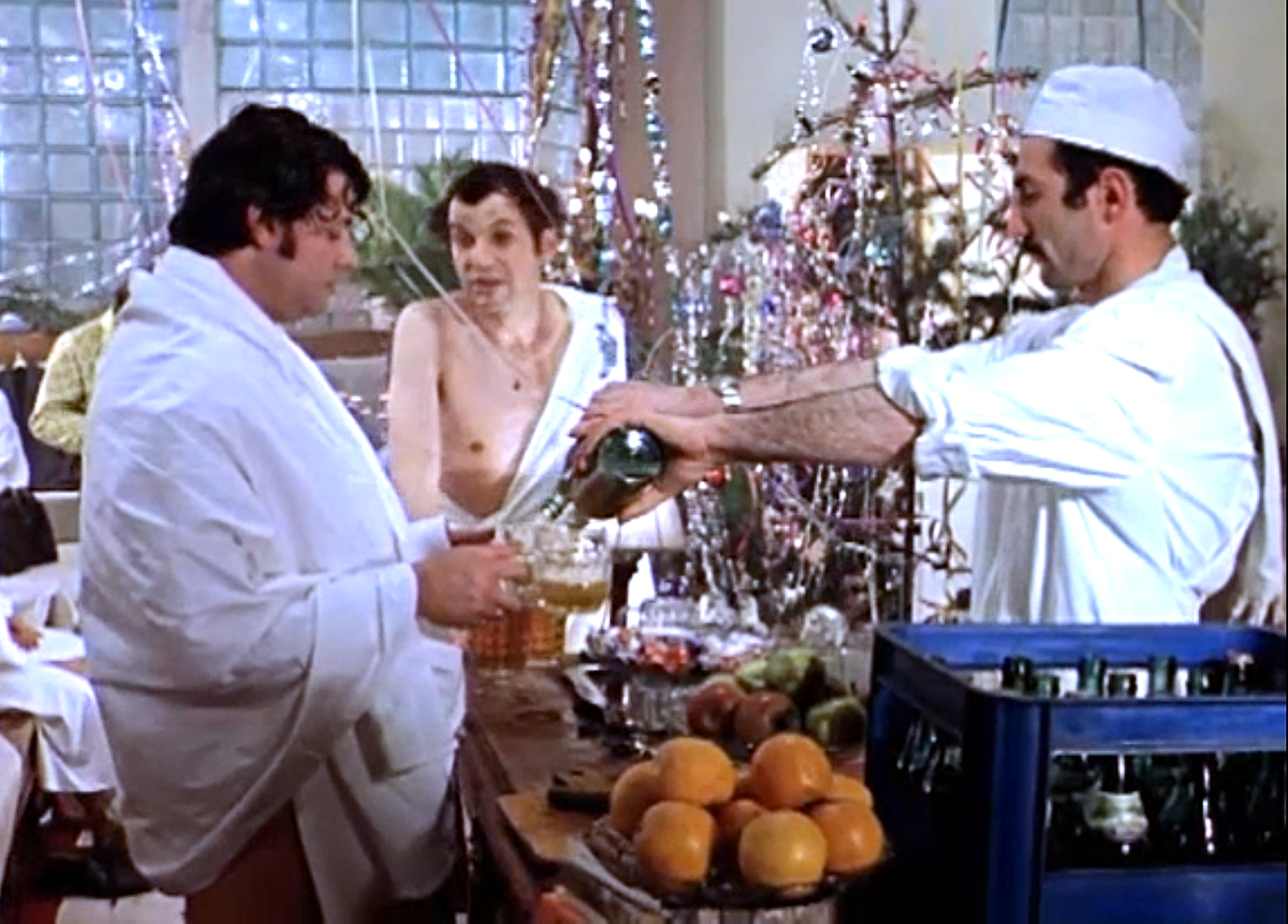 Женя Лукашин идёт в баню. А там его уже ждут три весёлых друга. Казалось бы, тема там у них несознательная. 😀 Но именно своей неправильностью, искренностью тот нетрезвый разговор друзей в бане вызывает добрую улыбку. Зритель расслабляется, глядя на эту неправильность. И ему хочется пересматривать эту сцену ещё и ещё!