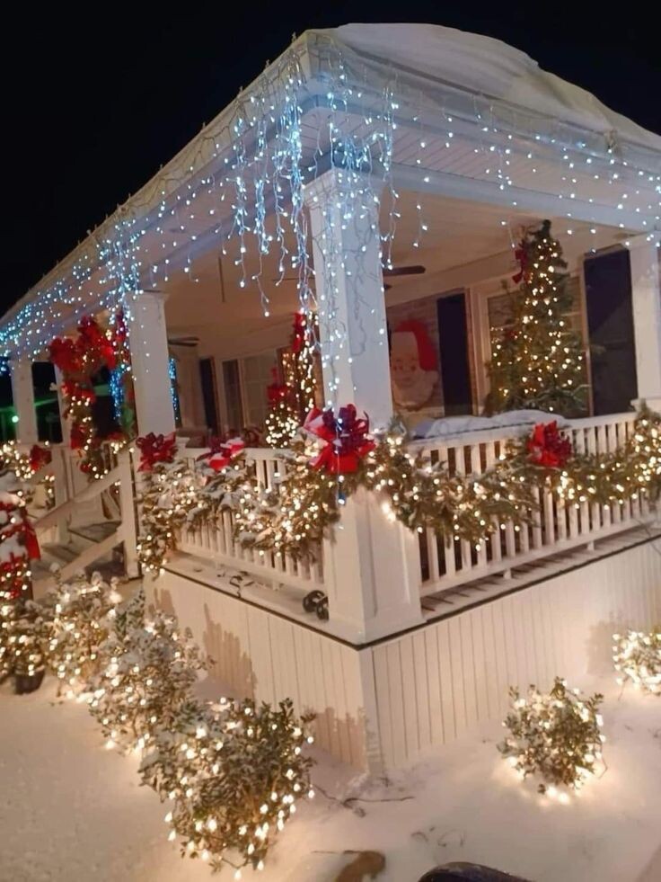 Коловерша все деревья завесил разными гирляндами, добавил от себя какие-то новогодние игрушки.