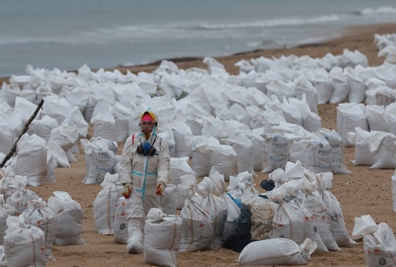 До этого волонтер из Краснодара Артем поделился технологией уборки пораженного мазутом песка с пляжей Анапы после крушения танкеров «Волгонефть-212» и «Волгонефть-239» с нефтепродуктами в Черном море. Доброволец отметил, что иногда им приходится убирать грунт руками, чтобы не зацепить много чистой почвы.