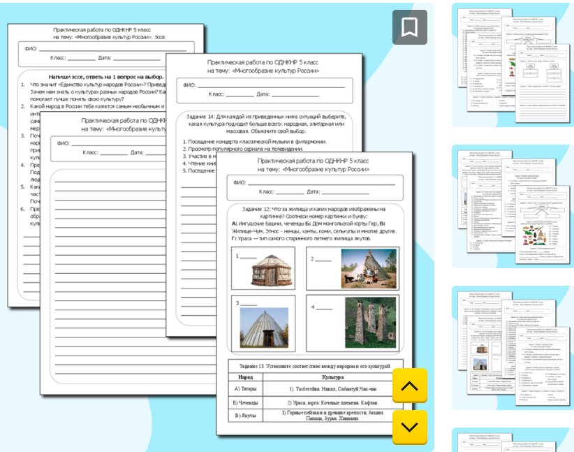 Многообразие культур России. Практическая работа, занятие, рабочий лист, тетрадь. 14 заданий + эссе + ответы. Тема 10. ОДНКНР. Основы духовно-нравственной культуры народов России. По ФРП.