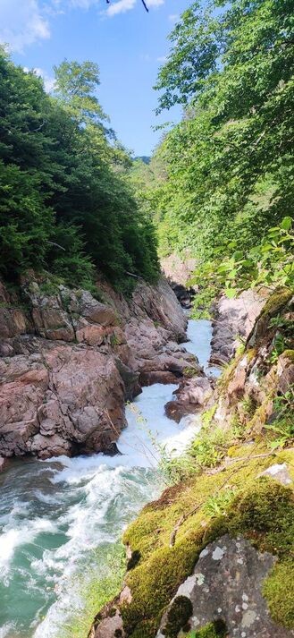 Здесь очень много смотровых площадок, и с каждой из них вам откроется разный вид. Где-то вы увидите разлив воды, метра 4, там река Белая бежит спокойно, лишь со дна поднимаются тысячи мелких пузыриков. Пройдите 100 метров до сужения реки. Здесь вода грохочет, срывается вниз с метровой высоты, создает причудливые воронки, вымывает полости, пещеры, лунки в твердом граните. Заберитесь чуть повыше и увидите ровные плато. Камень выглаженный водой, небольшие "бассейны" со стоячей прозрачной водой. И как же удивляет этот контраст. Вот небольшие заливчики, где ровная гладь воды, ни всплеска, ни шума. И в каком-то шаге от этого места - Белая бурлит, шипит, торопится, беспокоится. Плавные линии вдоль обрывистых каменных берегов расскажут вам историю борьбы сосуществования воды и гранита. Историю, которая продолжается по сей день, миллиметр за миллиметром вода, морозы, ветры вытачивают уникальное горное ущелье.