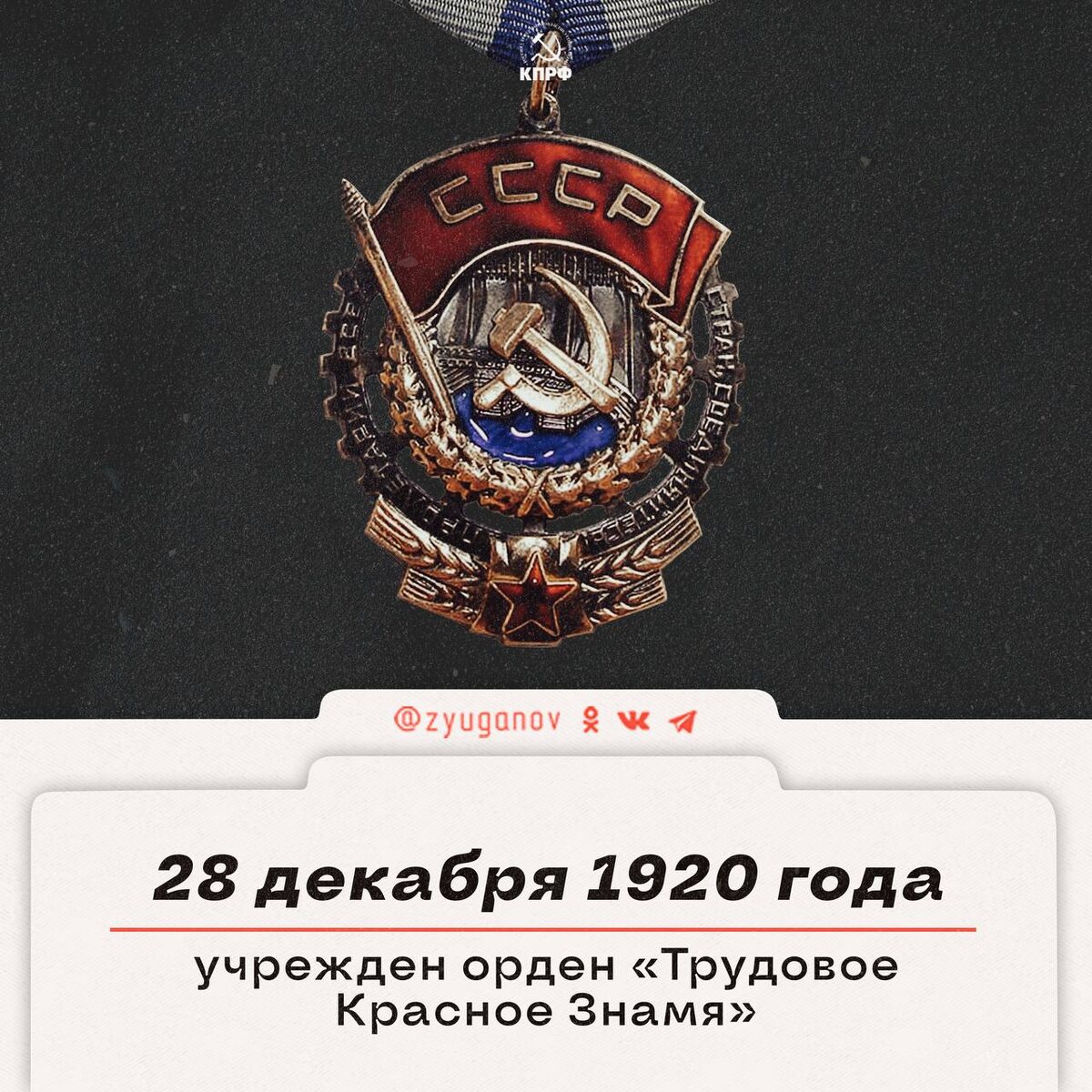 28 декабря 1920 г. в РСФСР был учрежден орден «Трудовое Красное Знамя».