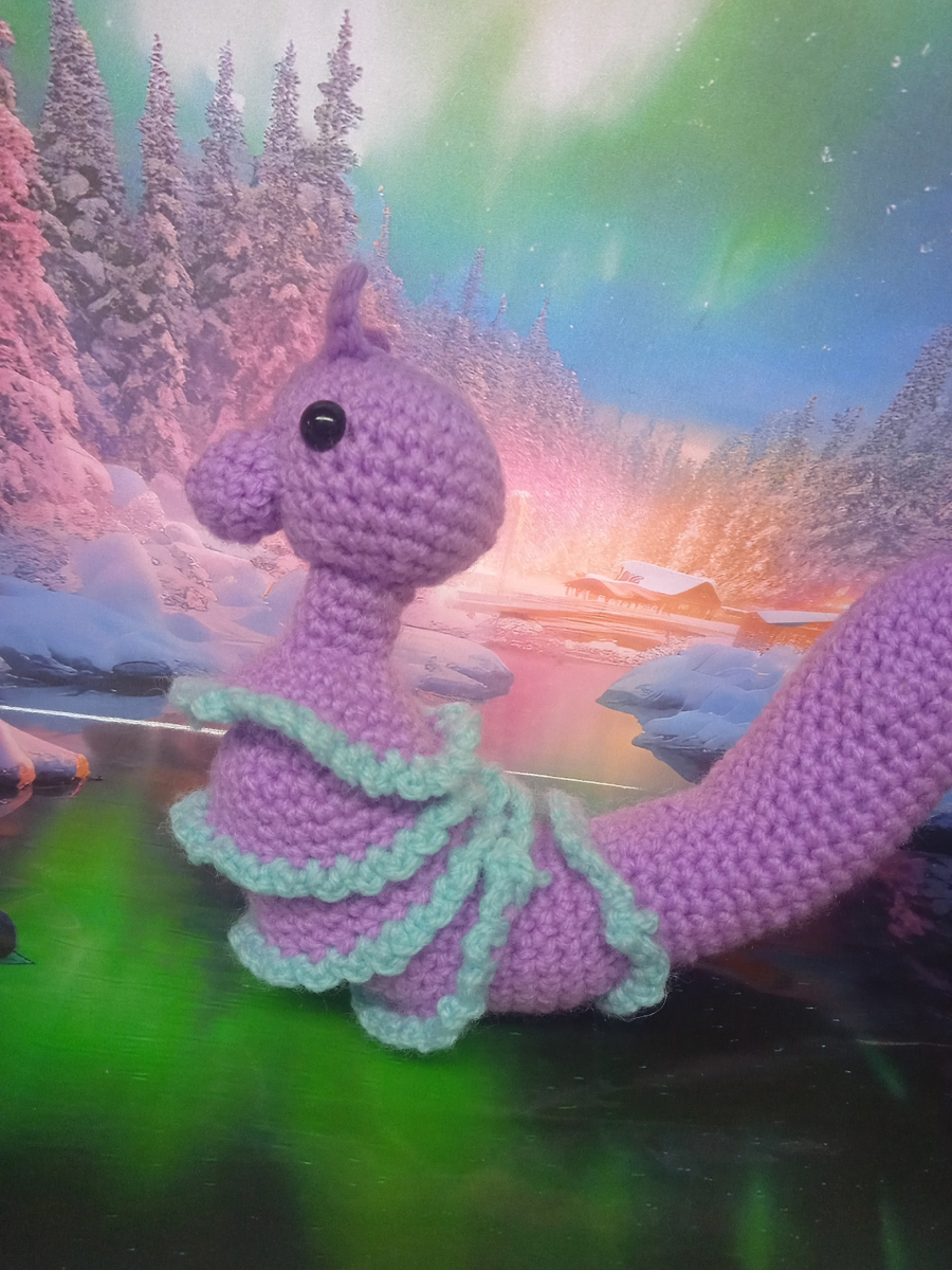 Всем здравствуйте Это последняя змея из моей коллекции. Вязала я ее по рисунку моей внучки. Как всегда я вязала ниточками детской пехорки. Общая длинна змеи-25 см. Из-за рожек внучка назвала ее гусеничной змейкой и мне пришлось объяснить ей, что в природе существуют много разных змей, в том числе и рогатые змеи тоже. Как я вязала такую змейку. Змея состоит из нескольких частей, которые вяжутся отдельно, а после собираются все вместе. 1)КА 8 2)3 пр, рог (4 вп, во 2ю петлю от крючка 3сб), 2 пр, рог, 3)пр, 1сб) 8раз 4)пр, 2 сб)8 раз 5-9)по кругу без изменений. Глаза крепим между 3-4 рядами. 10) уб, 2сб) 8 раз. Набиваем наполнителем, но не туго. 11)уб, 2 ст)6 рах 12-13) 2 ряда вяжем без изменений.14)уб, 1 сб) 6 раз Далее вяжем 3-4 круговых рядов без изменений, стягиваем оставшиеся петли и втягиваем во внутрь головы. Я оставила длинный хвостик для сборки. Тело я вязала отдельными детальками (типа что то на подобие колокольчиков) 1)КА 6 2) 6 пр=12 сб. 3-6)12 сб 7) пр, 1сб) 6 раз 8)пр,2