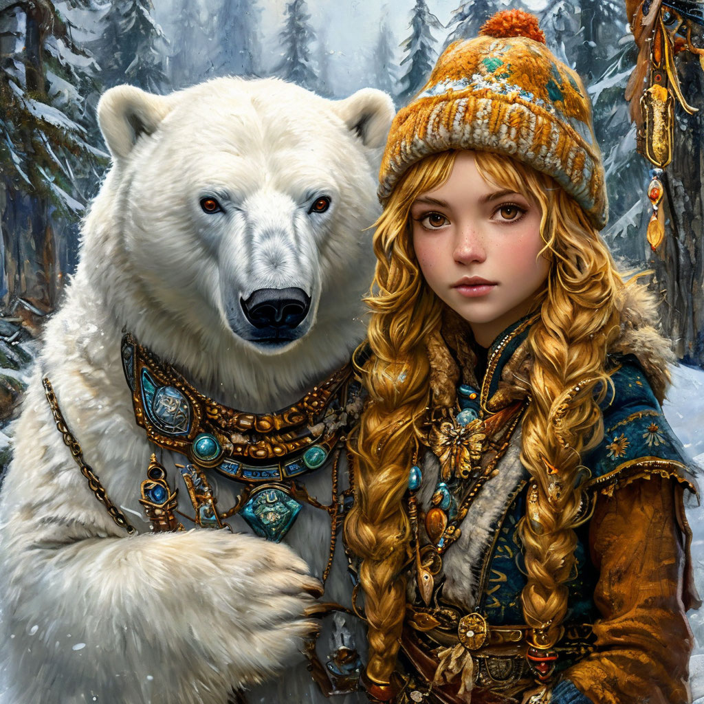 На краю мира, там, где вечная зима укрывает землю белоснежными одеяниями, простираются бескрайние просторы Арктики. Здесь, среди ледников и снежных бурь, жила девочка по имени Аня. Её глаза, яркие, как северное сияние, освещали собой все вокруг, а золотые волосы мерцали под лунным светом, словно нити чистого золота.