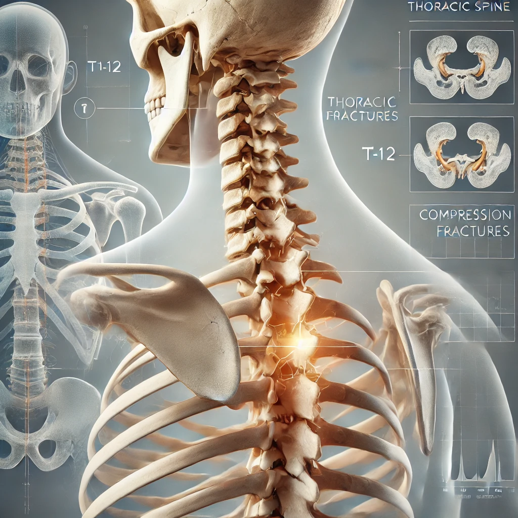 Переломы грудного отдела позвоночника: причины, симптомы и лечение Грудной отдел позвоночника состоит из 12 позвонков (T1–T12), которые образуют опору для грудной клетки и защищают жизненно важные органы. Переломы в этой области встречаются реже, чем в шейном и поясничном отделах, но они могут иметь серьезные последствия. Причины переломов грудного отдела позвоночника 1. Травмы высокой энергии: • Автомобильные аварии. • Падения с высоты. • Удары тяжелыми предметами. 2. Остеопороз: • Хрупкость костей у пожилых людей увеличивает риск компрессионных переломов даже при незначительных нагрузках. 3. Онкологические заболевания: • Метастазы в кости ослабляют позвонки, делая их уязвимыми. 4. Физические перегрузки: • Поднятие тяжелых предметов или резкие движения могут привести к микропереломам. Типы переломов грудного отдела 1. Компрессионный перелом • Один из наиболее распространенных. • Позвонок сжимается и теряет свою высоту. • Часто встречается у пациентов с остеопорозом.