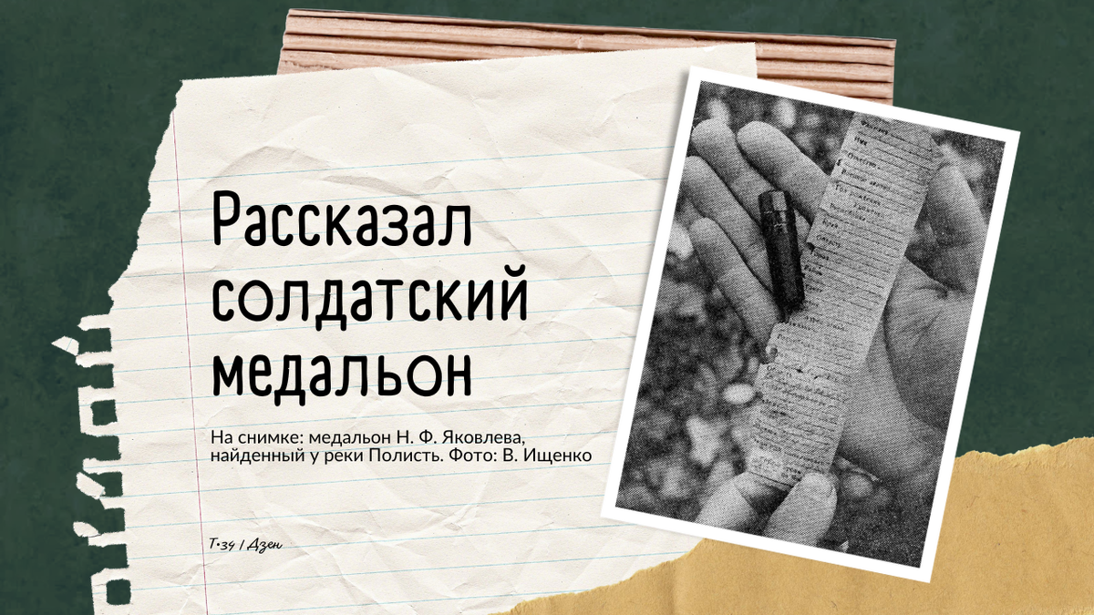 В один из августовских дней нынешнего года на берегу болотистой речушки Полисть, что на Новгородчине, нашли солдатский медальон. Его вскрыли. К счастью, именной бланк сохранился. Медальон принадлежал Никифору Филлимоновичу Яковлеву, военному ветфельдшеру, жителю Псковской области. Так началась эта волнующая история. В именном бланке также были указаны имена брата и жены погибшего. И ещё солдат писал, что «имеет пятерых детей». Как сложилась их судьба? На этот вопрос решили ответить бойцы сводного военно-патриотического отряда «Снежный десант» Казанского государственного университета. Они отыскали-таки родственников военного ветфельдшера. И вот — незабываемая встреча. Через сорок четыре года жена, дочь, брат, внучка солдата впервые узнали о судьбе мужа, отца, брата, деда. Плакали, вспоминали, говорили «спасибо». ...Пятый год у деревни Мясной Бор ведут поиски бойцы «Снежного десанта». В этом им помогают и новгородские следопыты. В прошлом году ребята нашли девять солдатских медальонов. В