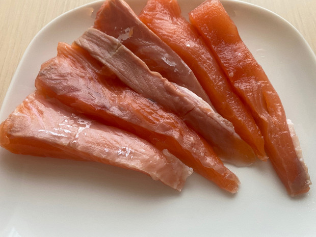 1.Свежую рыбу ополоснуть под водой и просушить бумажными полотенцами. 2.Саму рыбу чистить необязательно. Сделать надрезы на коже для лучшего просаливания. 3.Приготовить смесь до засолки. Смешать соль и сахар. Если нет розовой соли, можно использовать обычную. Но лучше крупную. Так рыба чуть быстрей просолится. В рецепте специально представлены две разные соли для примера. Рыба возьмет столько соли, сколько нужно. Соленость регулируется временем засолки. 4.Для засолки нужна глубокая форма, на дно насыпать смесь для засолки, выложить рыбу на форму, сверху засыпать смесью. 5.Оставшуюся рыбу выложить в форму и засыпать оставшейся