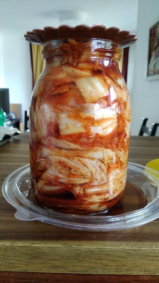 Почитал рецепты, но увы, по большей части это выглядит как "Взять горсть каперсов и перо из хвоста полярной совы". Однако, в моем представление, это же народный рецепт, более того, это не деликатес. Для корейцев это что-то типа заготовок, как квашеная капуста и соленые огурцы для русских. Такой рецепт обязан быть простым. Поэтому: Взял пол-вилка пекинской капусты. Это примерно килограмм. Взял 50 грамм соли и замочил капусту на ночь (так во всех рецептах и это вроде не напрягает). Утром вынул капусту, стряхнул рассол и порубил ее на куски. Головку чеснока раздавил, смешал с чайной ложкой чили и парой-тройкой ложек паприки (второй вариант, купить граммов 100-200 свежих перчиков чили и смолоть в блендере с парой головок чеснока. Хранится долго и можно просто использовать вместо сухого чили). Сахар я не ем, так что сахар не добавлял. Да и откуда у корейцев в древности возьмется рафинад. Смешал все с капустой и забил в банку. Через пару-тройку дней можно убрать в холодильник. В холодильнике